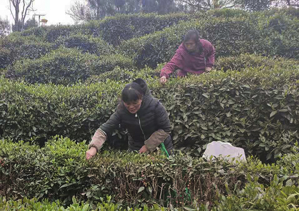 随着气温回暖,南丹县六寨镇龙马村六龙茶种植基地内,一行行茶树抽芽吐绿、生机盎然。3月23日,该村10多名“茶娘”,娴熟地采摘着一片片新鲜的茶叶。