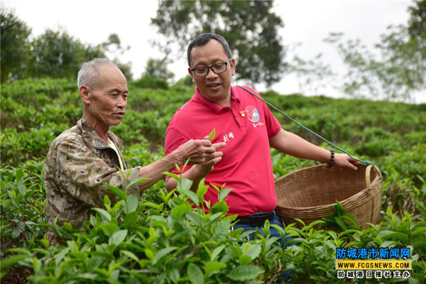 黄景超向驻村第一书记刘峰介绍茶园的发展情况。