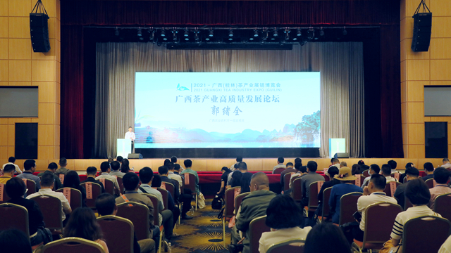郭绪全在致辞中表示,近年来,自治区党委、政府非常重视茶产业,不断加大对茶产业发展的支持力度,广西茶产业发展稳步加快。2020年全区茶园面积132万亩,茶叶产量8.83万吨,茶产业综合产值约260亿元,茶叶品牌打造不断加快,茶叶各类注册商标达500多个。广西茶产业迎来了良好的发展机遇期,但是与国内茶产业先进省市相比,仍有许多急需解决的问题和困难。希望通过此次论坛为契机,搭建中国茶文化与广西名茶的研究交流平台,汇集国内外知名专家学者的智慧,不断探索茶文化的精神内涵和社会功能,广泛交流和学习借鉴兄弟省市同行业的成功经验,把茶文化研究与推广桂茶品牌结合起来,进一步挖掘和赋予广西茶产品文化内涵,不断提升桂茶知名度、美誉度和影响力,推动桂茶精品建设。