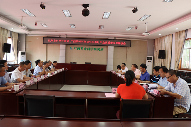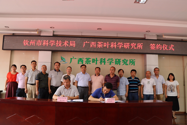 为落实国家和自治区科技创新战略,促进科技成果转移转化,进一步加强政产学研合作,做大做强钦州市茶叶产业,6月23日,钦州市科技局党组书记陈汪等一行9人到广西茶科所开展茶叶产业高质量发展座谈交流并签订技术合作协议。