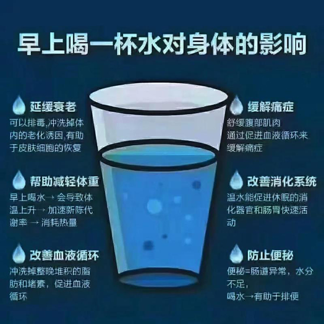 日常生活中,一定要养成积极饮水的生活习惯,早晨起床时最好喝200-300ml,午、晚餐一般可以汤代水,其它时间要经常性喝水,千万不要等口渴了才喝。当然,也不能喝得太猛,超过肾脏的排泄速度(大约0.7~1.0升/小时)就会造成水中毒,给心脏、肾脏等器官增加不必要的负担。