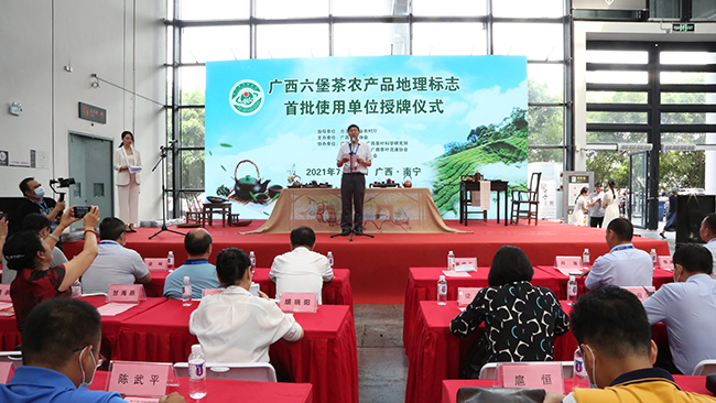 仪式上,陈振华宣读了《自治区人民政府关于授权广西茶叶协会申请广西六堡茶农产品地理标志登记和商标注册的批复》。据悉,只有在广西划定的48个县的539个乡、镇种植,由符合规定的、获得授权的企业、合作社等按照特定工艺加工,达到规定品质的茶叶才能称为“广西六堡茶”。
