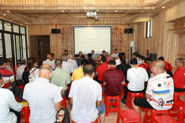 培训班上,县农机中心主任黄康青作开班讲话,提出了要求,同时,邀请沁怡六堡茶合作社社长谭爱云分享种植六堡茶的经验,并现场答疑。