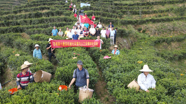 现场会上,分别进行了六堡茶机械化采摘与人工采摘对比试验、茶叶采摘机械演示,并邀请相关的专家到现场进行数据的记录和指导。农技、农机技术人员在活动现场向参加活动的农民宣传茶叶现代种植技术、农机新技术,并进行现场答疑。