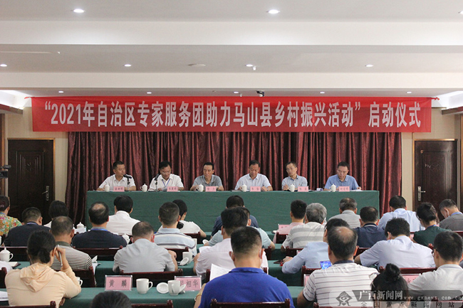 近日,由自治区人力资源社会保障厅主办、自治区留学人员和专家服务中心承办的“2021年自治区专家服务团助力马山县乡村振兴活动”在马山县启动。来自广西大学、广西农业科学研究院、广西林业科学研究院、广西水产研究院、广西特种作物研究院和广西兽医研究所等高校及科研院所的17位知名专家将在马山开展专业服务指导,为乡村振兴提供智力支持。