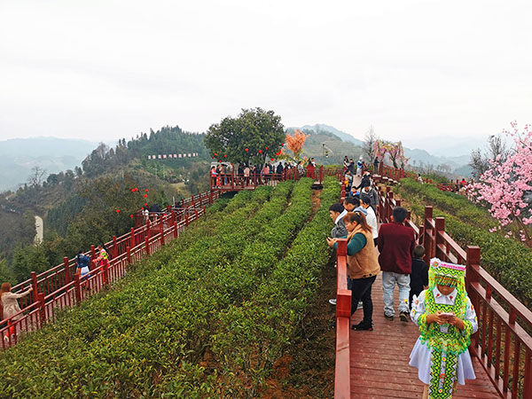西林县足别瑶族苗族乡央龙村九龙山生态茶园游客多 韦金艺 摄