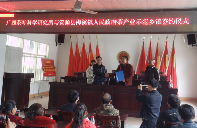 为进一步落实国家和自治区科技创新战略,促进科技成果转移转化,进一步加强政产学研合作,推动资源县茶产业高质量发展,12月8-9日,广西茶叶科学研究所与资源县梅溪镇人民政府、资源县梅溪镇戈洞坪村民委员会一同签订了茶叶科技示范合作协议。