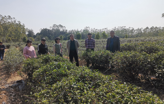 在玉林市福绵区福进茶叶专业合作社,特派员现场察看了广西茶科所选育的新品种及新品系在玉林地区生长情况,提出了新品种需要配套栽培措施建议,并就茶园冬季修剪及肥培开展了现场技术指导。在广西葵峰富硒生态农业开发有限公司,特派员就茶树品种、茶园栽培管理、茶叶加工、产品开发等进行了深入交流及现场技术指导,并提出要合理搭配茶树品种,不同品种配套相应栽培措施,根据市场需求开发具有特色的优质茶产品等建议。