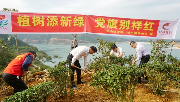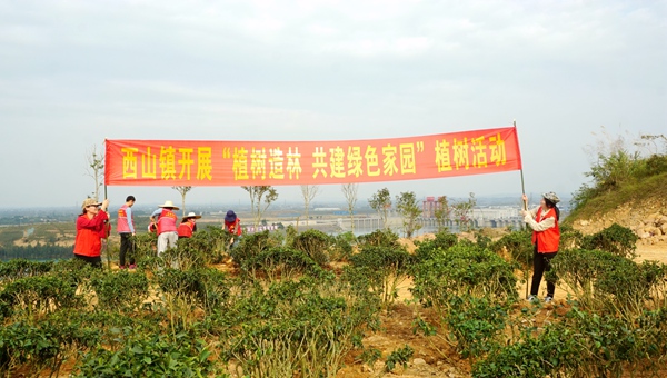 3月12日,桂平市西山镇为1.67万亩的西山茶产业基地增添新绿。