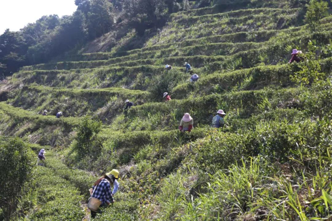 在黄练镇桂鑫茶叶壮帽山生态茶场上,一层层依山而种的茶树抽芽吐绿,生机盎然,茶香弥漫山野。只见30多名采茶人员分布在青翠连绵的茶陇间埋头劳作,手法娴熟地将一片片嫩芽快速采入篓中。“这几天我们每天都上山采茶,春茶采摘的要求很高,最好是独芽和一芽一叶。”正在采茶的村民甘雪莲说。