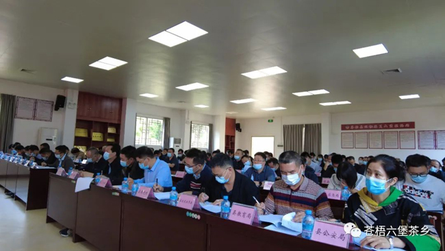 4月7日上午,六堡镇召开茶园种植大会战攻坚工作大会,挂点六堡镇县领导、县委副书记马士成,县人大常委会副主任曾庆梅、黄钊培、县人民检察院检察长罗华庆到会指导,县茶园种植大会战攻坚指挥部第一战区工作组有关负责同志,六堡镇全体领导、干部,各村(社区)党组织书记、主任,驻村第一书记,工作队员,镇直单位负责人参加会议。