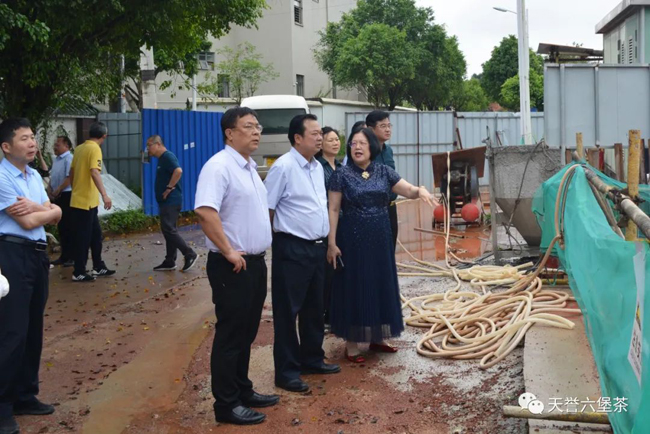 叶剑强一行来到岭南茶仓项目施工现场,实地查看了项目建设进度,听取项目负责人关于岭南茶仓项目建设进展情况的汇报,针对项目推进中存在的困难和问题提出意见和建议。