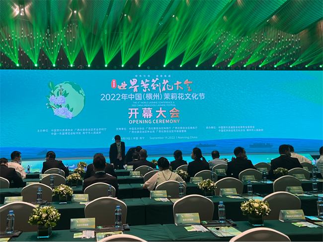 9月19日,第四届世界茉莉花大会暨2022年中国(横州)茉莉花文化节开幕大会在南宁举行。横州市委书记黄海韬致欢迎辞,南宁市人民政府副市长刘宗晓在开幕大会上致辞。国内部分省(市、区)政府机构、茶叶协会负责人,东盟部分国家驻南宁总领事馆官员,从事茉莉花及茶叶科研、加工、营销等方面的知名专家学者、企业代表,新型能源、新型建材、健康文旅、生物科技等行业知名企业代表参加开幕大会。