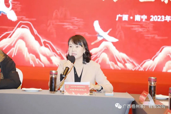 广西梧州茶厂有限公司董事长温而刚向与会经销商表示热烈欢迎及衷心感谢,她表示,在刚刚过去的2022年,面对复杂多变的疫情形势,以及全国茶叶市场消费疲软等诸多不利因素影响,经销商们仍然对三鹤六堡茶充满信心,努力进取,公司营业收入继续保持增长态势,这背后离不开每一位经销商的大力支持,是大家共同努力的成果。