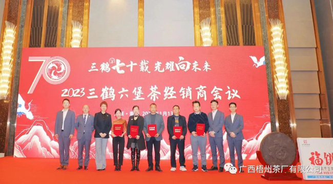 2023年,站在新起点,迈向新征程,广西梧州茶厂有限公司作为六堡茶产业的龙头企业,始终牢记党中央领导在参加党的二十大广西代表团讨论时“要把六堡茶做大做强”的殷殷嘱托,将充分发挥公司核心优势,以高质量发展为统领,通过产品、品牌、市场协同发力,加强产品研发和创新力度,加快推进全国化布局、重点市场打造战略,持续深化三鹤六堡茶的品牌建设,持续提升品牌价值,巩固提升三鹤六堡茶的品质优势和市场竞争力,塑造与时俱进、内涵丰满的中华老字号品牌。