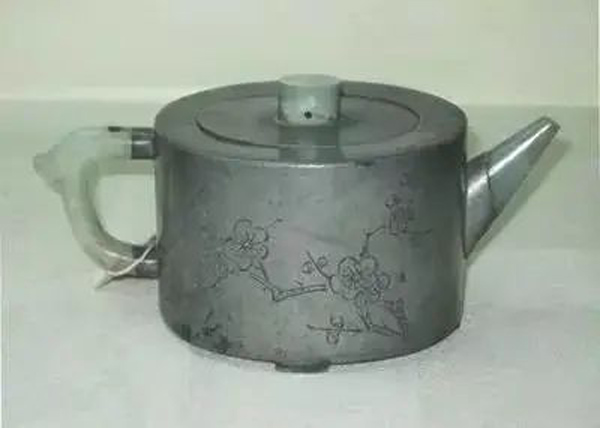 另据《画林新咏》云:“朱石梅仿古以精锡制茗壶,刻字画其上,花卉、人物皆可奏刀,人以之比曼生砂壶。”