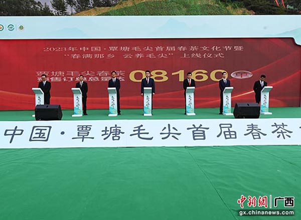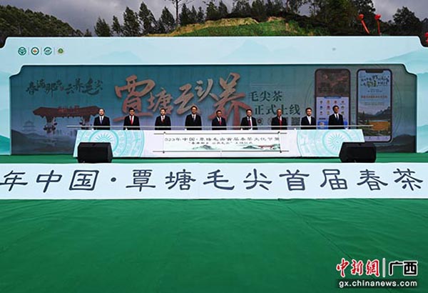 春分时节,春茶吐芽,满目青翠。3月21日,2023年中国·覃塘毛尖首届春茶文化节暨“春满那乡 云养毛尖”上线仪式在广西贵港市覃塘区叁袋茶产业基地举行。