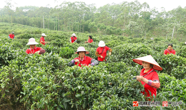 福绵区福进茶叶专业合作社负责人陈海丽穿梭在茶海中,仔细查看茶树生长情况,脸上洋溢着幸福的微笑。“清明前采摘的一芽一叶春茶,是石和茶里最好的。”陈海丽说,这些茶树生长于富硒土壤之上,产出的茶叶味道鲜美,已获广西富硒农产品认证。目前,已收获6500公斤干茶订单。