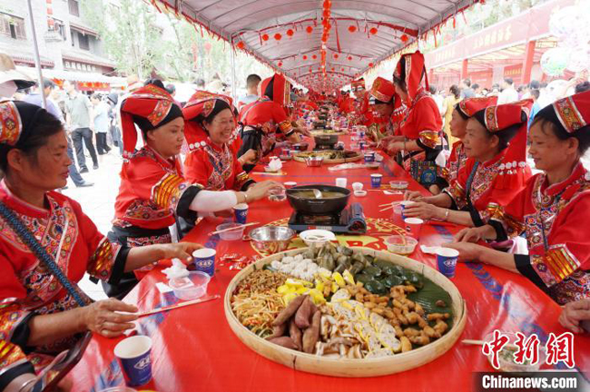 5月21日,在广西桂林市恭城瑶族自治县油茶小镇,恭城油茶长桌宴。 欧惠兰 摄