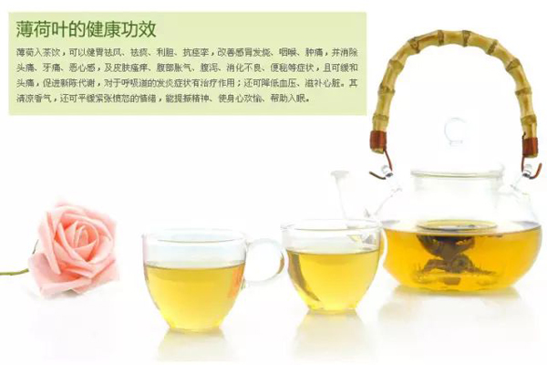 薄荷茶:味辛,性凉,有疏风散热、清头利咽、透疹解郁之效。但晚上最好别喝,孕妇不要喝,阴虚多汗者也要慎用。