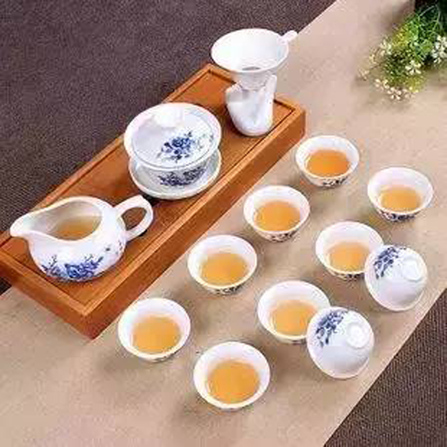 花茶:一般选择青花瓷等盖杯、盖碗。