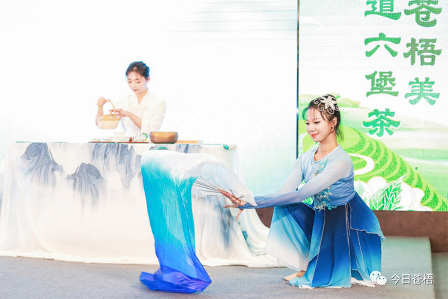 2022年,六堡茶制作技艺作为“中国传统制茶技艺及其相关习俗”的重要组成部分,被列入联合国教科文组织人类非物质文化遗产代表作名录,自然是此次品鉴推介会的重头戏。在推介会上,以动态视频、演讲推介的形式,从历史渊源、产品品质、传统工艺、产业优势等方面对苍梧六堡茶进行了推荐介绍,深入剖析制茶工艺的文化历史及现代科技研究成果。采茶舞、茶艺表演多个精彩互动环节穿插其中,行云流水间还原六堡茶的采茶、制茶、冲茶工艺全流程,邀请茶业嘉宾及爱好者品茶互动,为现场带来视觉、听觉、嗅觉和味觉的多重享受,从不同角度诠释百年传承的六堡茶文化。