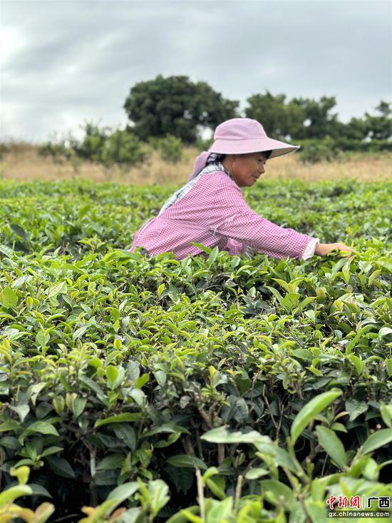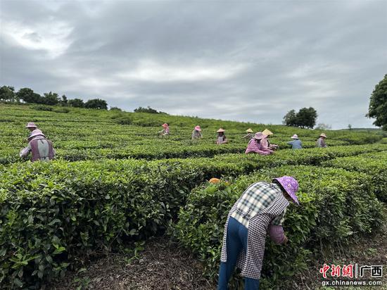 图为工作人员采茶忙。 武鸣区委宣传部供图