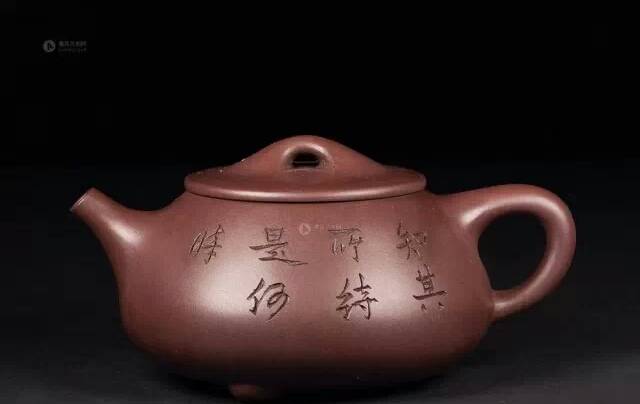 从留传于世的石铫壶看,至陈曼生、杨彭年时期,已有了很大的变化,更趋向文人化、艺术化。“曼生石铫”主要特色是上小下大,重心下垂,使用稳当,壶嘴为矮而有力的直筒形,出水畅顺,壶身呈“金字塔”式,观赏端庄。“曼生石铫”与“子沾石铫”相比,虽同为彭年所制,但前者更显饱满而丰润,后者则刚烈而古拙,这可能是因人的个性而在壶的艺术上表现。那么,紫砂“石铫”何时称“石瓢”呢?这应从顾景舟时期说起,顾引用古文“弱水三千,仅饮一瓢”,“石铫”应称“石瓢”,从此相沿均称石瓢壶。