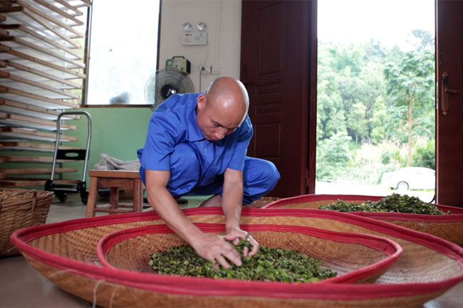 “一茶生来千山养,百香甘自心火炼。”农成采用传统加工方式和现代理念,完善后山茶制作工艺,形成“采摘一萎凋一揉捏一发酵一烘焙一成品”的独特加工流程。