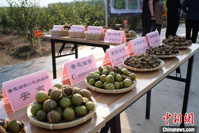 图为在益元香花油茶新品种中试基地展示的不同油茶品种。刘俊聪 摄