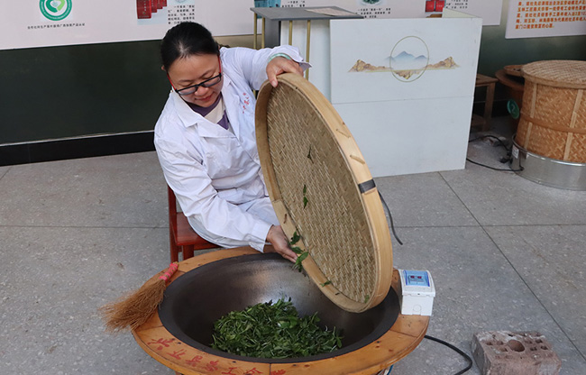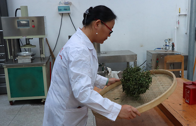 观察茶叶状态,制茶即将完成。黄紫玥摄