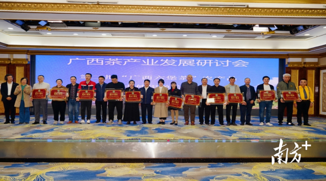 会上举行了第二批“广西六堡茶”农产品地理标志用标单位授牌仪式。广西南山白毛茶茶业有限公司等35家符合条件的企业成为第二批广西六堡茶农产品地理标志使用单位,为扩大广西六堡茶生产规模,推动广西茶产业高质量发展,打造广西千亿元茶产业打下坚实基础。