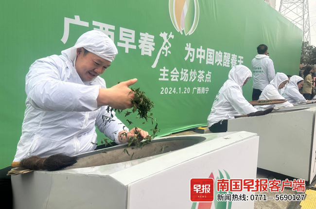 1月20日,2024广西“中国早春第一茶”推介暨迎春新茗分享会系列活动启动,灵山县、三江侗族自治县、昭平县、苍梧县、凌云县等地纷纷开采早春茶,茶业大师、制茶技术能手现场展示“炒好广西第一锅春茶”。