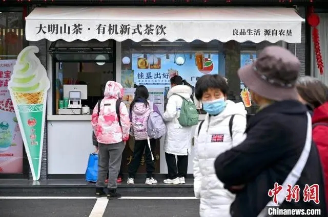 1月25日,市民在“大明山茶·有机茶新式茶饮”奶茶店选购奶茶。俞靖 摄