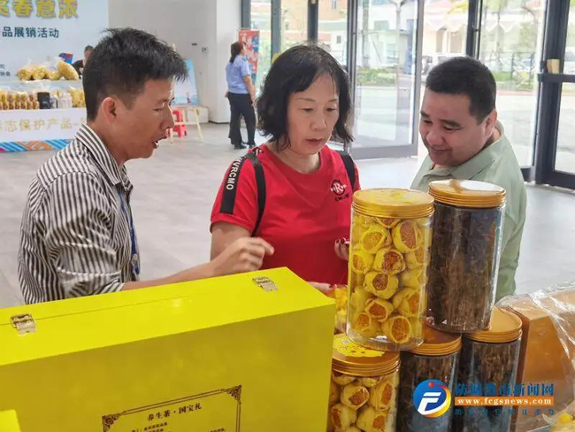游客们了解金花茶产品。