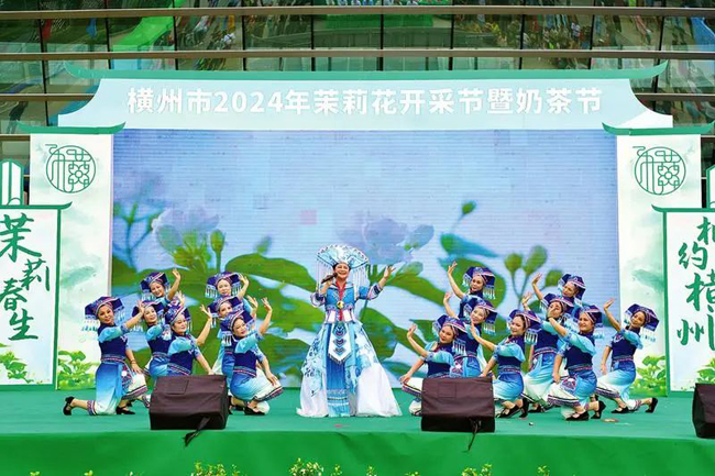 万亩茉莉花绽放,点点洁白淡雅清香,花与人交织成一幅芬芳动人的画卷。近日,横州市2024年茉莉花开采节暨奶茶节开幕式在横州市举行。