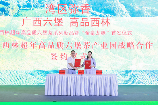 当天,还举行了西林超年六堡茶系列新品品鉴会暨“金毫龙腾”六堡茶首发仪式和广西超年高品质六堡茶(西林)产业园战略合作签约仪式。西林县人民政府与深圳市贡元文化科技发展有限公司签署了战略合作协议。