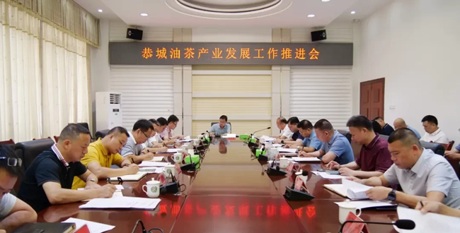 县委书记陈代昌指出,自治区党委、政府高度重视恭城油茶产业发展,提出用工业化理念、产业链思维推动油茶产业发展;市委、市政府把发展恭城油茶产业提升到打造桂林世界级旅游城市高度通盘考虑,全力推动恭城油茶产业提质升级。要做成恭城油茶实现“百亿产业”的目标,各部门要从学习贯彻习近平总书记关于广西工作论述的重要要求和对桂林的重要指示精神,紧跟上级对产业的谋划发展步伐,推动恭城油茶产业与农文旅深度融合。恭城油茶的商标注册、专利保护工作要提速,进一步提升恭城油茶的品牌形象。要加快恭城油茶全产业链发展,做好相关产业产值统计工作,做到应统尽统,为油茶产业发展提供数据支撑。要加强政策支撑和规划引领,坚持系统思维、全盘考虑,利用好产业发展的黄金时期,强化资金、人才、土地等要素保障,多方合力推动油茶产业发展。