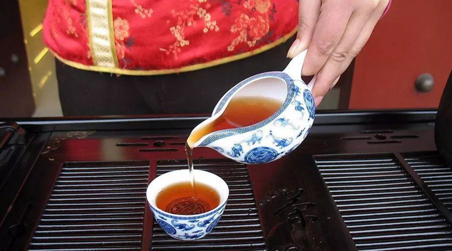 品黑茶是有讲究的,一杯黑茶应分三口喝。第一口试茶温,第二口闻茶香,第三口才可以慢慢啜饮。呷茶入口,茶汤在口中回旋,顿觉口鼻生香,香馨醇厚,一切尽在不言中。