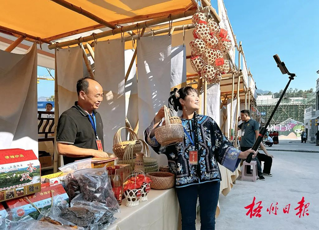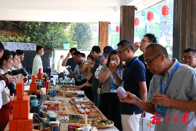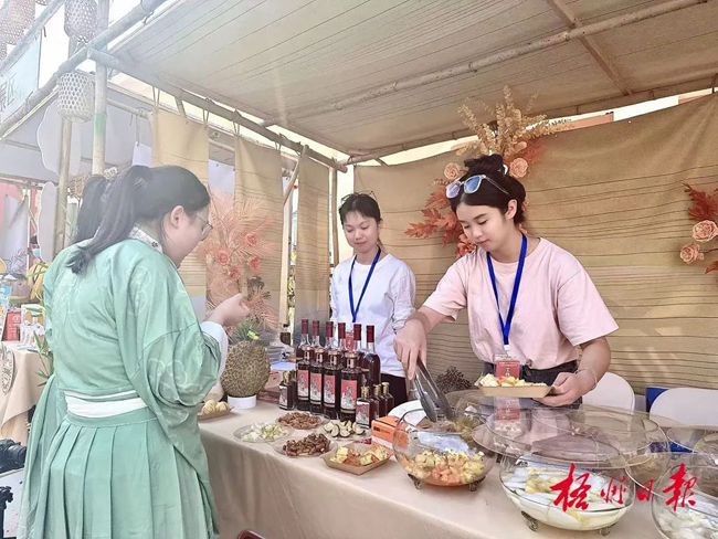 当天上午,记者走进“茶系瑶乡情·六堡礼上宾”六堡茶文化活动的主会场六堡小镇看到,现场人头攒动、热闹非凡。本次文化活动设置了国潮市集区域及多个游戏区域,数十位汉服爱好者巡游其中,带给游客沉浸式的文化体验。其中,国潮市集展示了苍梧县各镇的乡村振兴产品,如腊肉、桂皮、野生枸杞等,还有来自钦州、肇庆等地的商家带来的坭兴陶、乌龙茶、百香果等特色产品。游戏区域可供游客体验蹴鞠、投壶、射箭等游戏,并穿插了以茶文化为主题的歌舞表演。