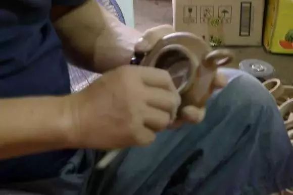 紫砂壶的壶口位置、壶盖子口有像砂纸磨过的痕迹,壶身很光滑,但是在到接近壶口的位置有圈或多或少的划痕,对光看的时候很明显,摸起来点毛。有些初接触紫砂的人会以为这是瑕疵,其实这只是整口的痕迹。