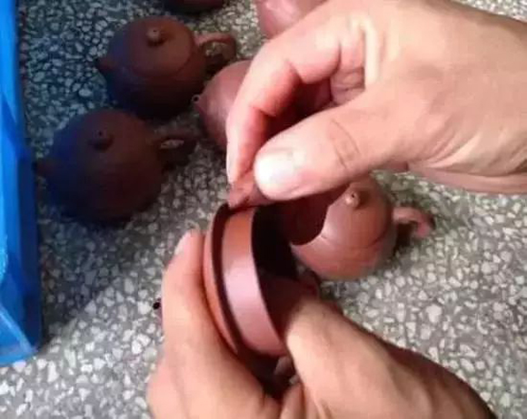 整口,就是壶基本烧熟定型后(基本完成收缩),再通过打磨的方法磨平口沿、磨掉盖子子口多余的部分。然后抹上泥,封闭磨开的气孔,再次烧制,这样,做出来的壶就口盖严谨了。