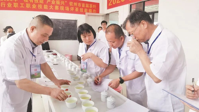 近日,2025年“桂有技能 产业振兴”钦州市首届茶叶行业职工职业技能大赛暨灵山县早春茶品鉴活动在灵山县举行,搭建了技能人才交流平台,推动茶叶产业向标准化、专业化、品牌化发展,提升我市茶产业技能人才队伍建设水平,促进茶产业发展。