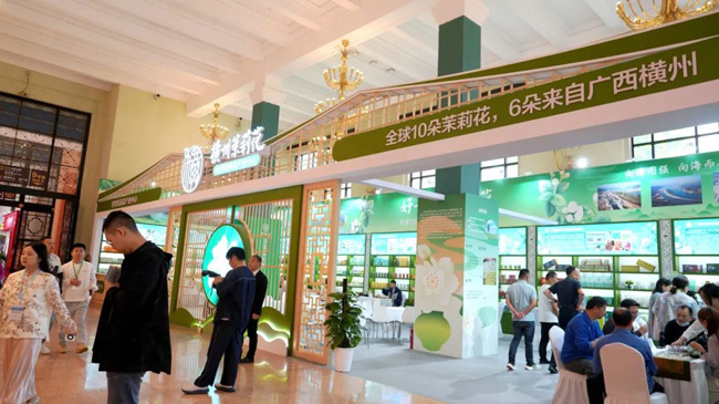 开幕仪式结束后,王庆等与会领导嘉宾来到横州市展区,共同品尝了十三窨茉莉绣花针,清新芬芳的茉莉花茶使领导嘉宾们赞不绝口,给予了高度赞赏。同时希望横州市能继续挖掘茉莉花文化内涵,以创新为驱动,强化茉莉花(茶)品牌传播战略;以匠心精神深耕产品研发,以开放姿态拓展合作空间,持续擦亮“世界茉莉花都”金字招牌,推动横州茉莉花茶产业向价值链高端跃升。