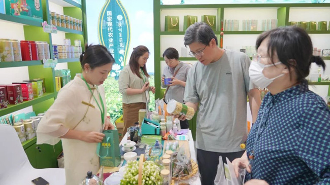 展会期间,蒙柯宇来到横州展区,与参展企业代表亲切交流,仔细询问企业的发展情况、产品特色以及参展收获等。鼓励企业要抓住机遇,借助展会平台加强与各地的交流合作,进一步提升横州茉莉花(茶)的品牌影响力,推动横州茉莉花(茶)产业向更高水平发展。