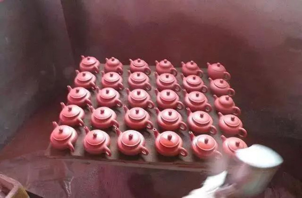 紫砂本是素面素心的,保持其本有的砂色,一般不会进行喷浆工序的,但是也有人为了造假去喷,如紫泥为了充当朱泥卖,会喷成红色伪装。