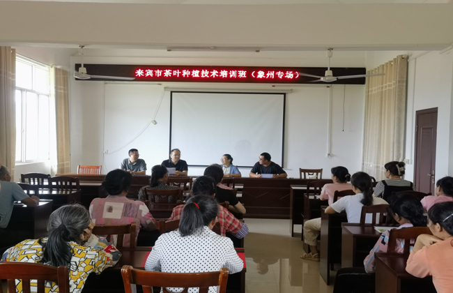 2025年6月24日上午,来宾市科技特派员银少华、来宾市生态植保站副站长李枫等一行3人前往象州县妙皇乡思高村开展茶叶种植技术培训,40名茶农参加培训。