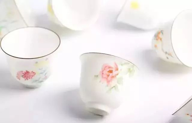源自康熙时期的“十二花神杯”型,原是画花卉,后根据这种杯型,陶瓷工艺师傅用各种釉水制瓷,并画出各式的纹路。杯壁上的花纹皆是手绘师一笔一划在素胚上画出来,属于釉下彩。花纹清晰,简约大气。