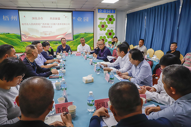 11月11日,考察组深入梧州幸福三巨源六堡茶有限公司,重点考察智慧化茶叶仓储等核心环节的技术标准与管理经验。在随后召开的座谈会上,双方围绕六堡茶全产业链运营模式展开深入交流,就产品研发、市场推广、品牌建设及茶文化传播等方面的先进做法进行探讨,并就投资合作相关事宜开展进一步对接洽谈。