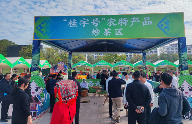 制茶师通过精准把控火候与翻炒节奏,确保鲜叶受热均匀。炒茶过程中,茶香四溢,不仅吸引了众多游客驻足观赏、拍照留念,更让来自全国各地的马拉松爱好者近距离感受贺州茶文化的深厚底蕴与独特魅力,有效助力贺州茶品牌知名度的提升与文化传播。同时,村跑活动各级嘉宾也莅临我市 “桂字号” 农特产品炒茶展区,现场观摩手工炒茶技艺,与制茶师傅深入交流炒茶技巧。